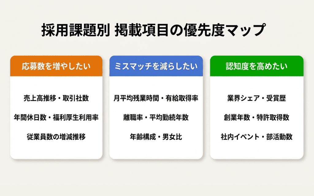 掲載項目の選び方 ─ 採用課題から逆算する