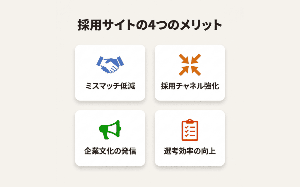ここからは、採用サイトを持つ主な効果とメリットを4つの観点から整理します。