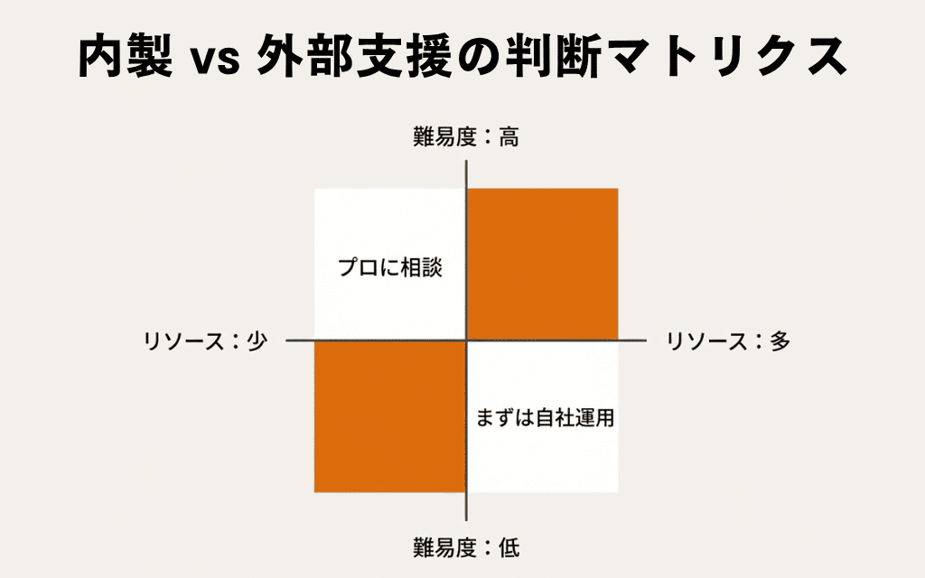 ・内製(自社対応)と外部パートナーへの依頼の判断基準