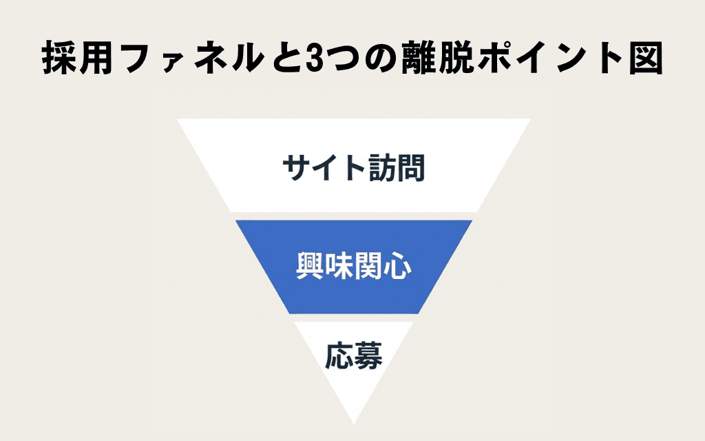 全体の数字をただ眺めるのではなく、求職者が「サイトを訪れる」「興味を持つ」「応募する」というステップのどこで離脱しているのかを見極めることが重要です。
