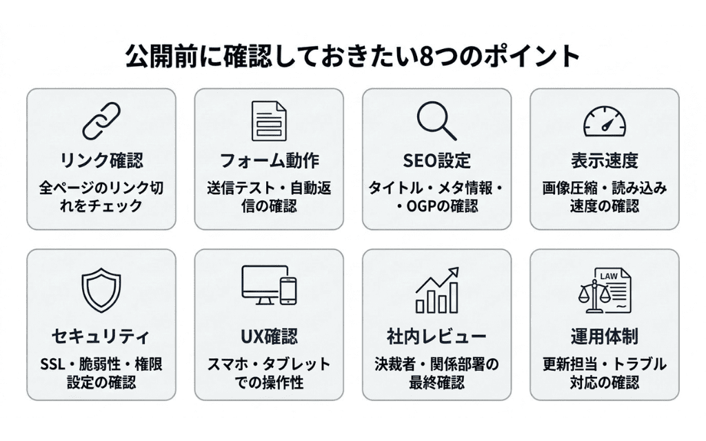 ここでは、公開直前に押さえておくべき最終チェックポイントを整理しました。