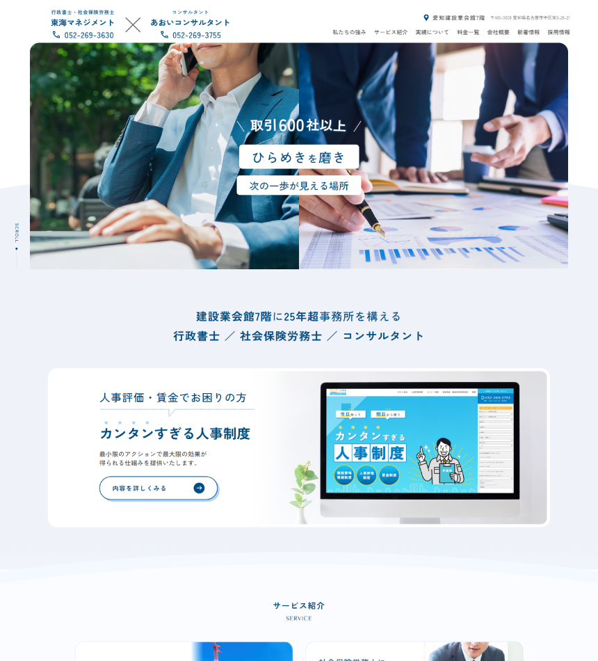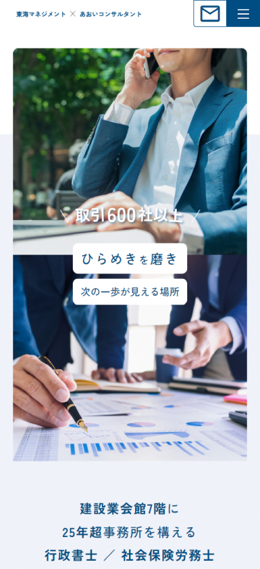 法務と経営の2大事業にちなんで、メインビューも2分割にしました。