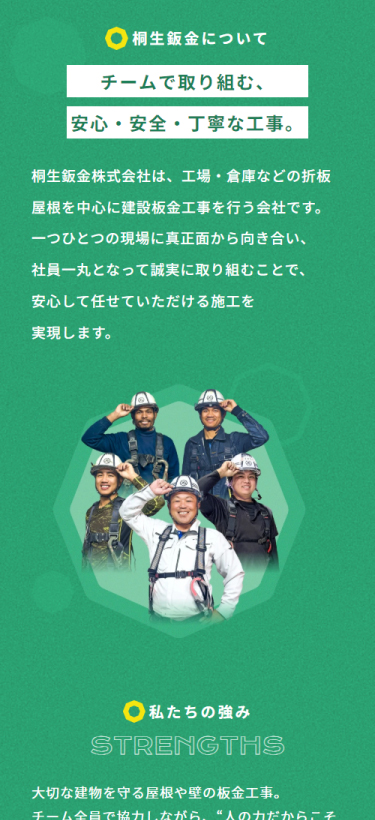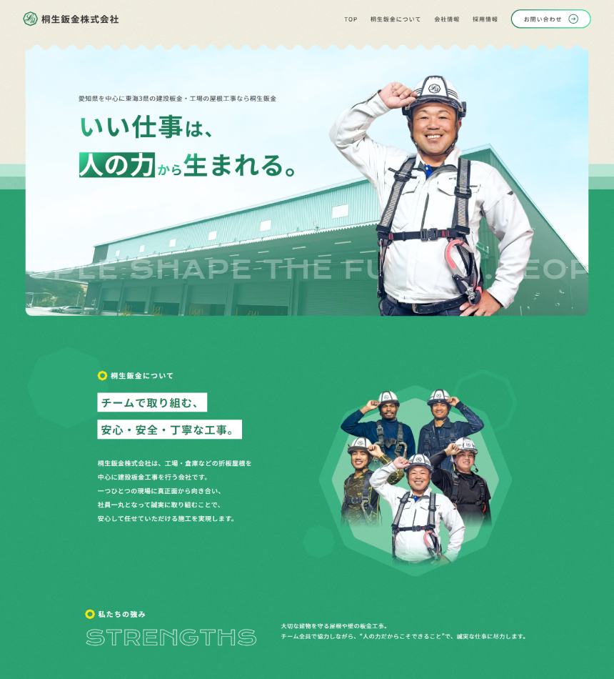 屋根工事事業を表す屋根の形のモチーフをあしらいとして使用し、